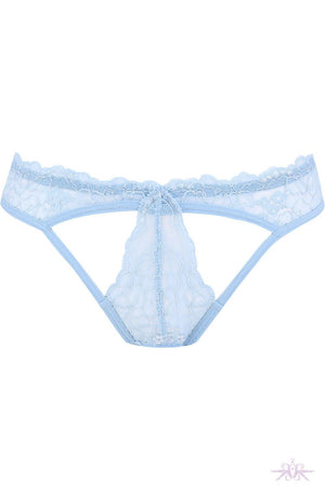 A gorgeous little open brief with soft lace fabric and an open derriere. These panties are a beautiful baby blue with open lace to the front and sides with pearl effect detailing to the rear. These caress the buttocks so are ideal for the boudoir.